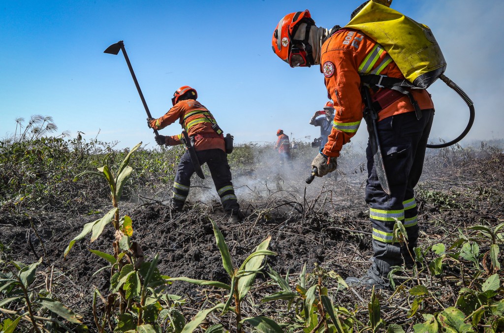 O Corpo de Bombeiros Militar de Mato Grosso combate 43 incêndios florestais neste sábado (07.09). Atuam 202 bombeiros, com apoio de quatro aviões, 65 viaturas